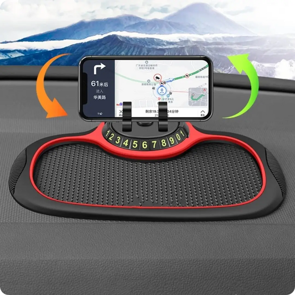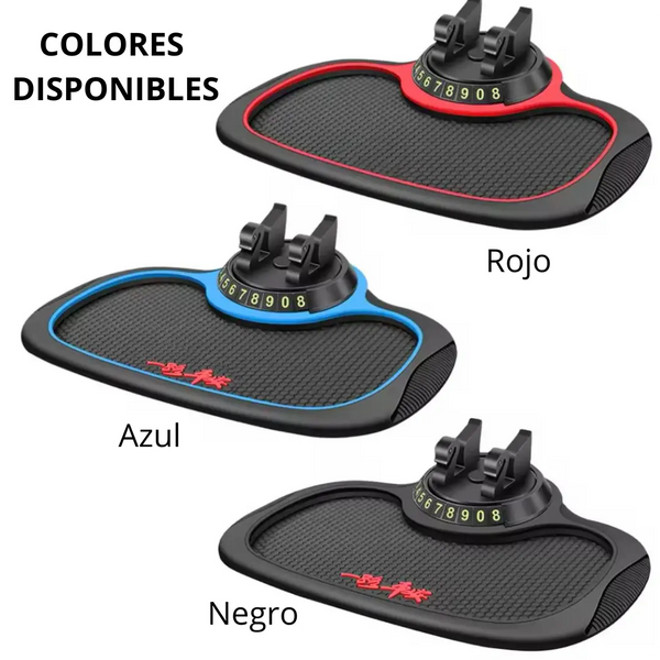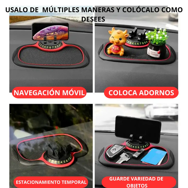 Descubre la solución perfecta con nuestra alfombrilla multifuncional antideslizante, que además incluye un soporte giratorio para tu celular🚘📳