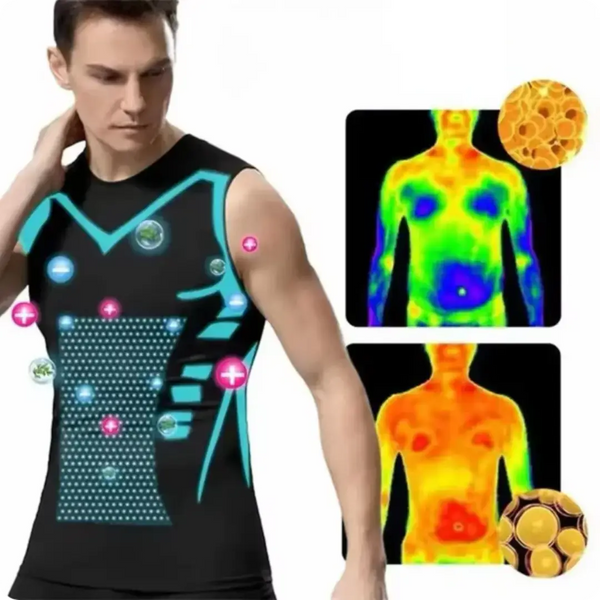 La camisilla IONFIT PRO para hombre genera su propia energía y ofrece masaje multidimensional con terapia iónica e infrarroja lejana. Esto estimula la circulación, alivia el linfedema, la inflamación, la retención de líquidos y la celulitis.