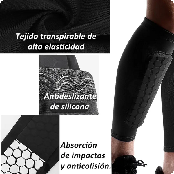 ¿Cansado de golpes y molestias mientras practicas deportes? Estas canilleras con tecnología de bloque anticolisión en forma de panal están hechas para absorber impactos y cuidar tus pantorrillas en todo momento